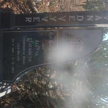 VYVER Aletta Elizabeth, van de voorheen LE ROUX nee MALAN 1918-1993