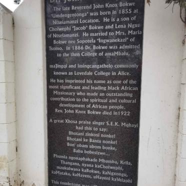 Cemetery / Memorials Information: In reading up on the internet about John Knox Bokwe I saw it mentioned that he was...