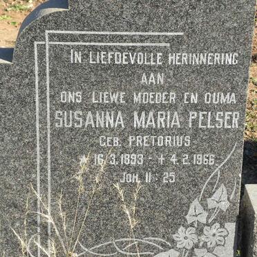 PELSER Susanna Maria nee PRETORIUS 1893-1966