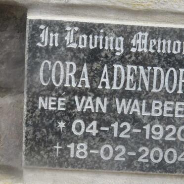 ADENDORFF Cora nee VAN WALBEEK 1920-2004