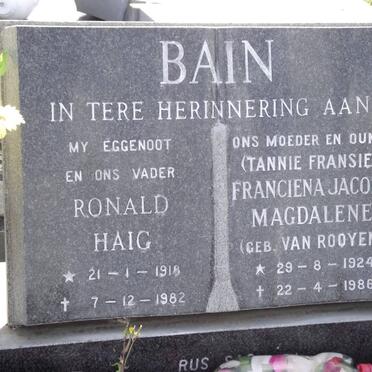 BAIN Ronald Haig 1918-1982 & Franciena Jacoba Magdalene VAN ROOYEN 1924-1986