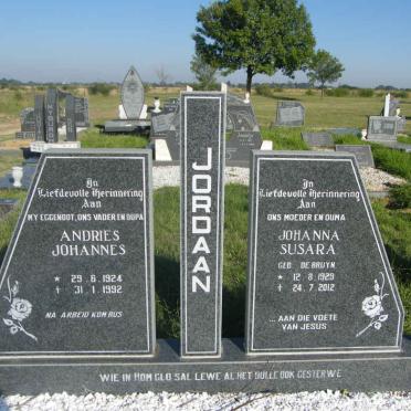 JORDAAN Andries Johannes 1924-1992 & Johanna Susara De BRUYN 1929-2012