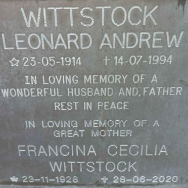 WITTSTOCK Leonard Andrew 1914-1994 & Francina Cecilia 1928-2020