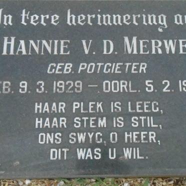 MERWE Hannie, v.d. nee POTGIETER 1929-1982