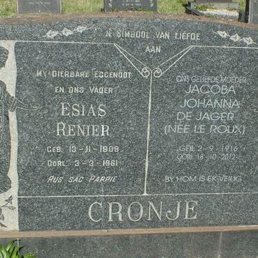 CRONJE Esias Renier 1908-1961 & Jacoba Johanna de Jager LE ROUX 1916-2012