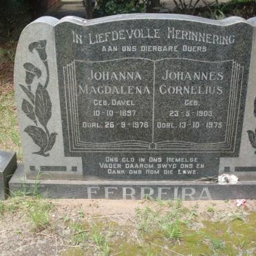 FERREIRA Johannes Cornelius 1903-1975 & Johanna Magdalena DAVEL 1897-1976