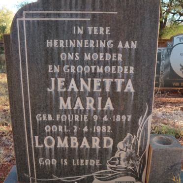 LOMBARD Jeanetta Maria nee FOURIE 1897-1982