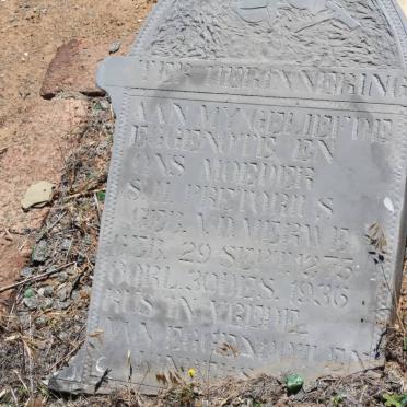 PIENAAR Anna Jacoba Elizabeth formerly VAN DER MERWE 1847-1917