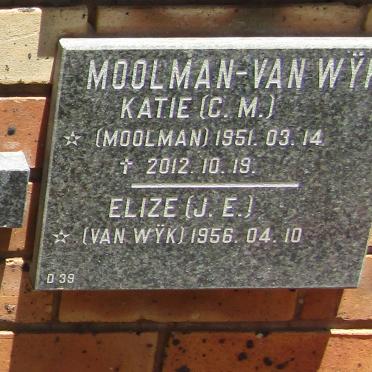 WYK C.M., van nee MOOLMAN 1951-2012 :: MOOLMAN J.E., nee van WYK 1956-