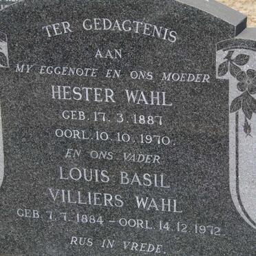 WAHL Louis Basil Villiers 1884-1972 & Hester 1887-1970