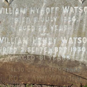 WATSON William Nyhoff -1924 :: WATSON William Henry -1930 :: WATSON Rosa Ann -1931 :: WATSON Ruth Elizabeth -1955