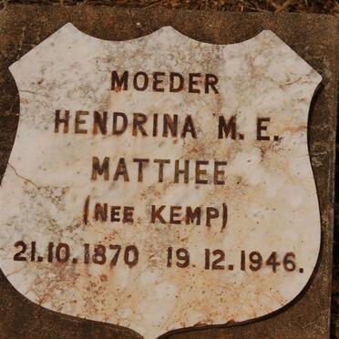 MATTHEE Hendrina M.E. nee KEMP 1870-1946