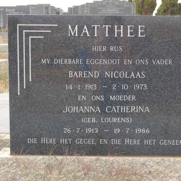 MATTHEE Barend Nicolaas 1913-1973 & Johanna Catherina LOURENS 1913-1986